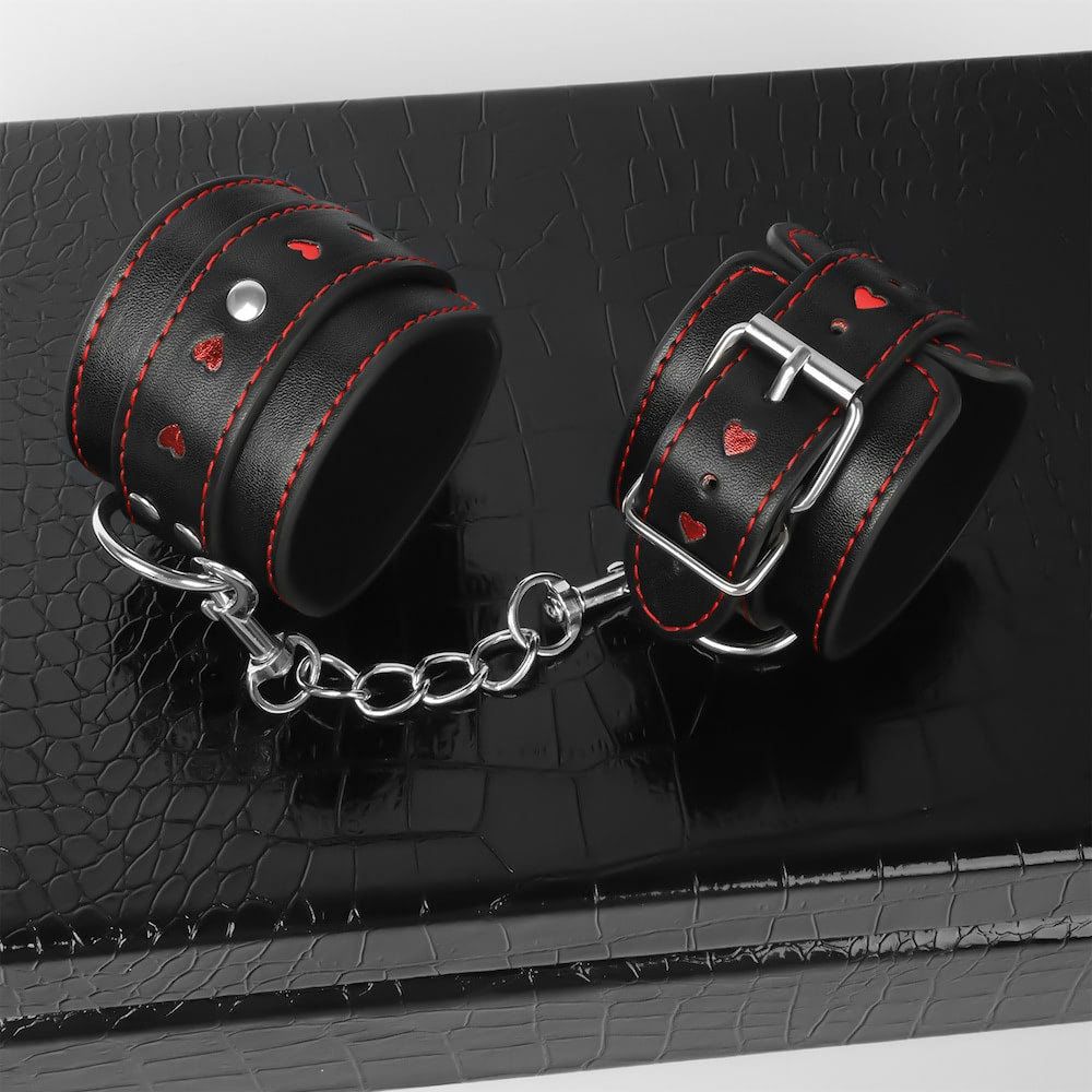 Adicione um toque de sofisticação e ousadia aos seus momentos a dois com estas Algemas de couro preto. Projetadas para quem busca uma experiência de fetiche refinada, elas combinam o visual clássico do couro com detalhes modernos que elevam a temperatura do quarto.