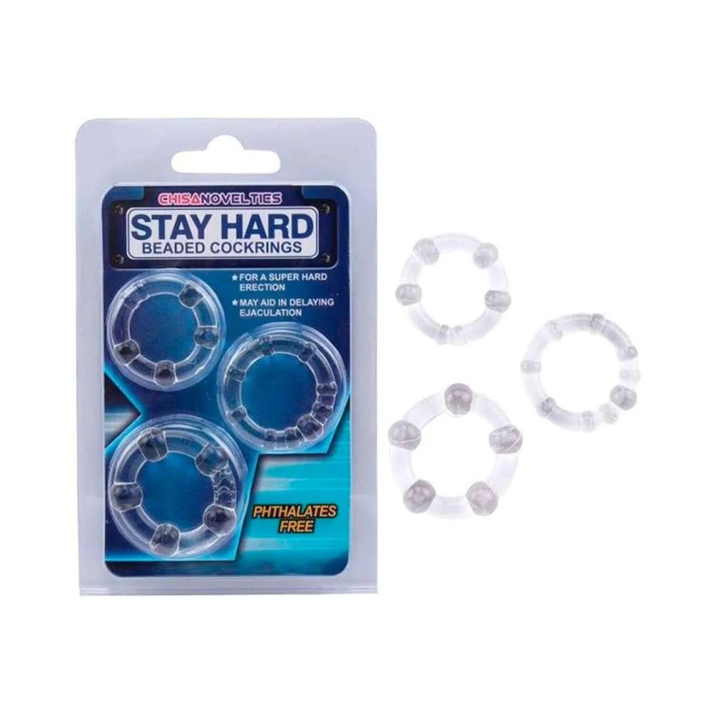 Stay Hard é um kit com 3 anéis penianos em tamanhos variados, confeccionado em silicone possui um toque suave além de sua elasticidade que oferece total conforto. Com estes anéis seu tempo de prazer será ainda maior oferecendo uma boa experiência não só para você mas para a pessoa amada também.