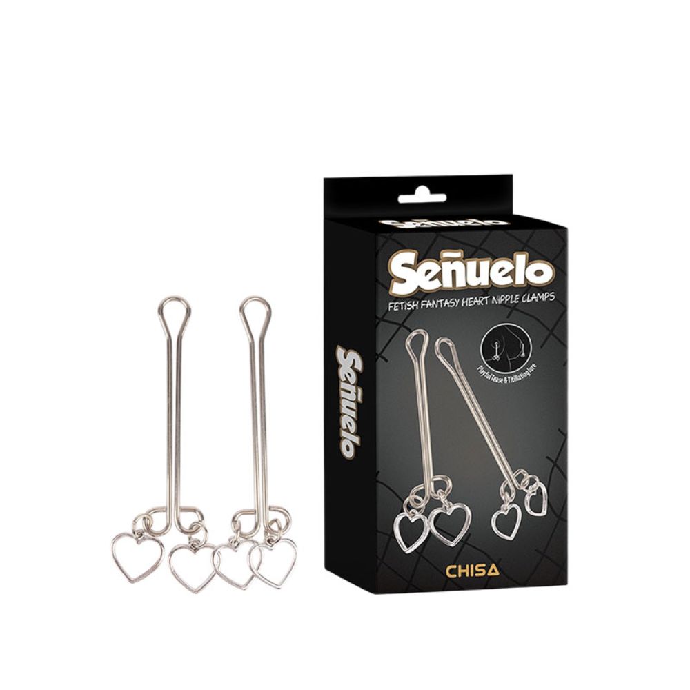 Os pingentes em formato de coração adicionam um toque charmoso e sedutor, enquanto a haste dupla garante ajuste confortável e seguro. Fabricados em metal resistente, são ideais para quem busca qualidade e sofisticação no universo do fetiche.