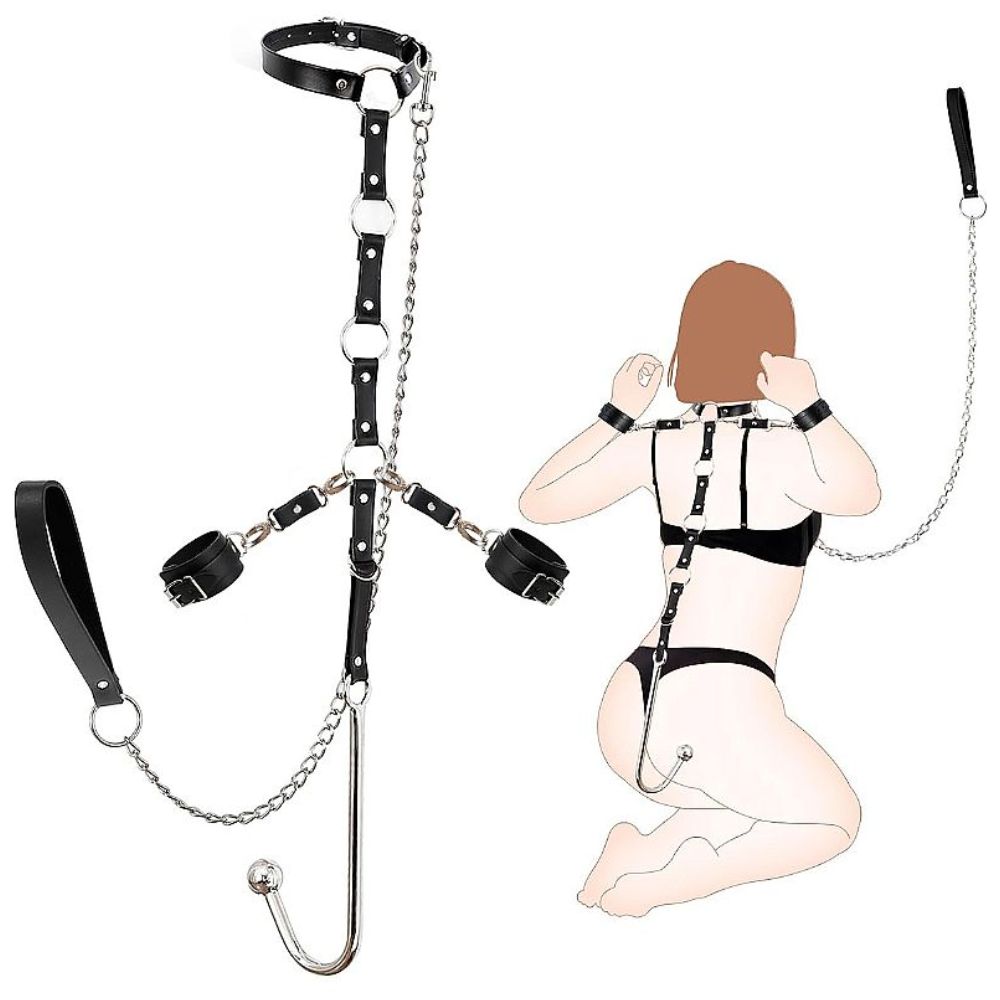 O design foi pensado para manter os braços imobilizados nas costas, enquanto o gancho anal cria uma conexão de tensão e prazer, forçando uma postura de entrega absoluta. É a peça perfeita para cenários de dominação (BDSM), onde a vulnerabilidade e o controle se encontram em perfeita harmonia.