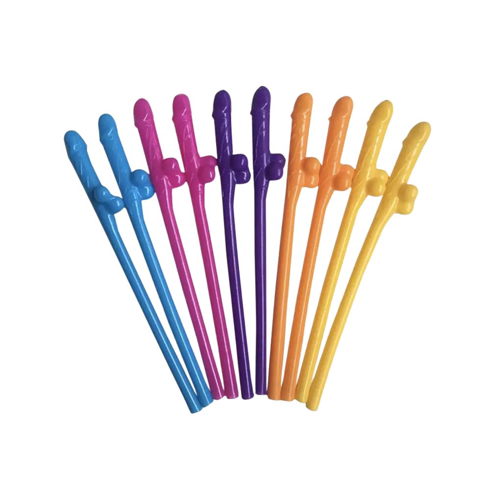 Kit com 10 Canudos Pênis: Diversão para Festas - Sipping Straws Colors