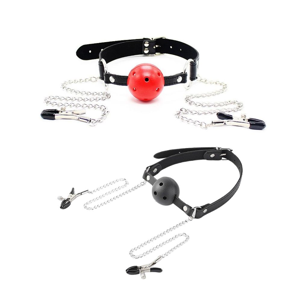 Explore o mundo da submissão com nossa Mordaça em couro sintético preto, equipada com prendedores de mamilos com corrente. Este acessório sedutor é perfeito para apimentar sua vida amorosa com jogos sensuais.