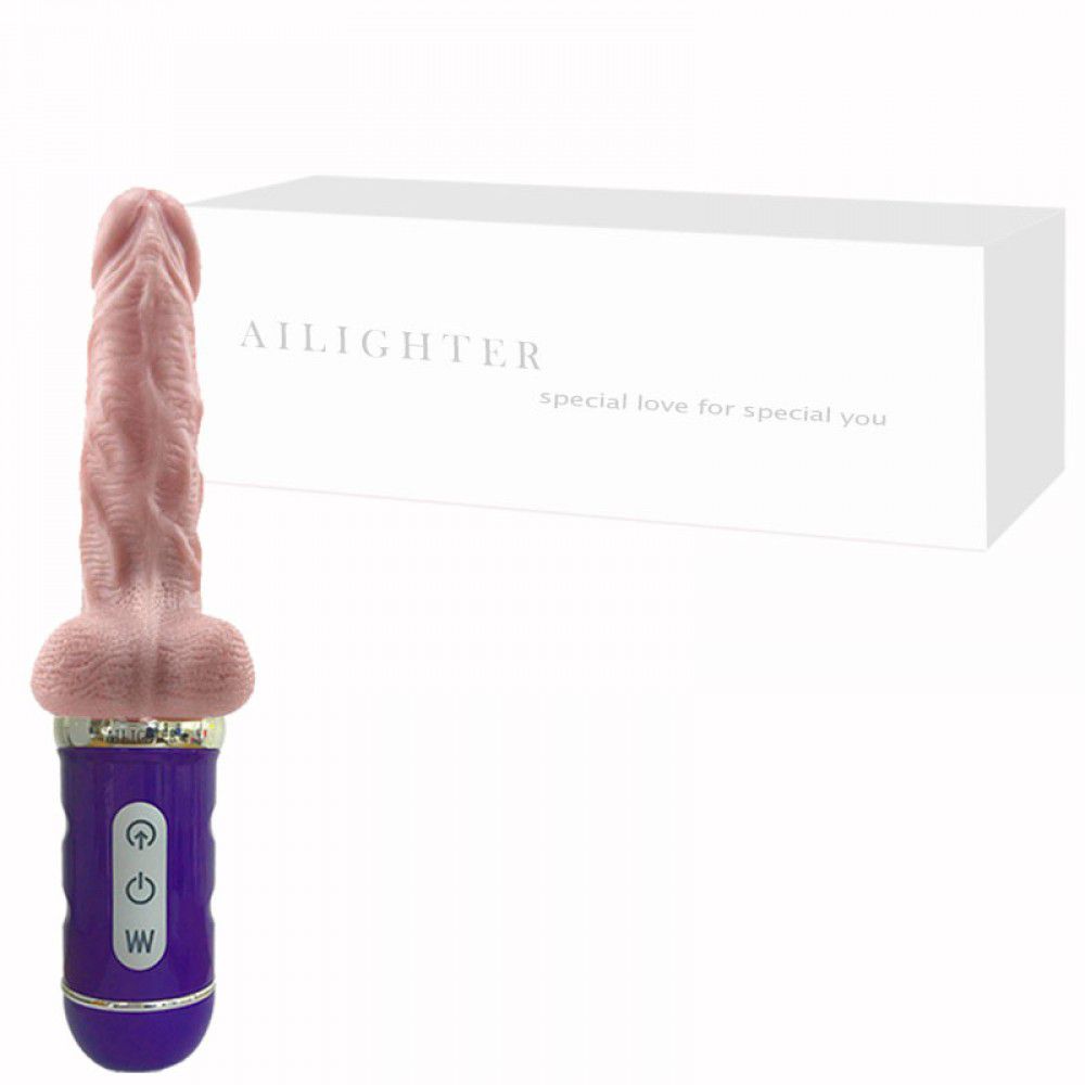 Prótese realística confeccionada em silicone macio e suave ao toque com glande definida, prepúcio, veias salientes e escroto. Possui 10 modos de vibração, 3 modos de velocidades e botão próprio para vibração e vai e vem. Perfeito para satisfazer seus desejos. Não deixe de experimentar!