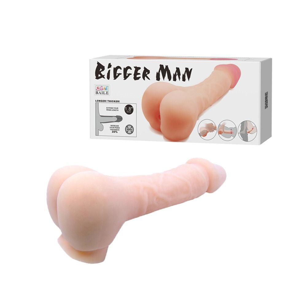 Capa Peniana em forma de pênis realístico com glande definida, textura de veias e escroto, desenvolvido em cyberskin, com massageadores internos, perfeita e completa para você inovar sua intimidade e divertir-se! Possui cerca de 6 cm de preenchimento na ponta, promovendo um crescimento de até 35% no tamanho do pênis. Pode ser usado também como masturbador masculino e como estimulador feminino.
