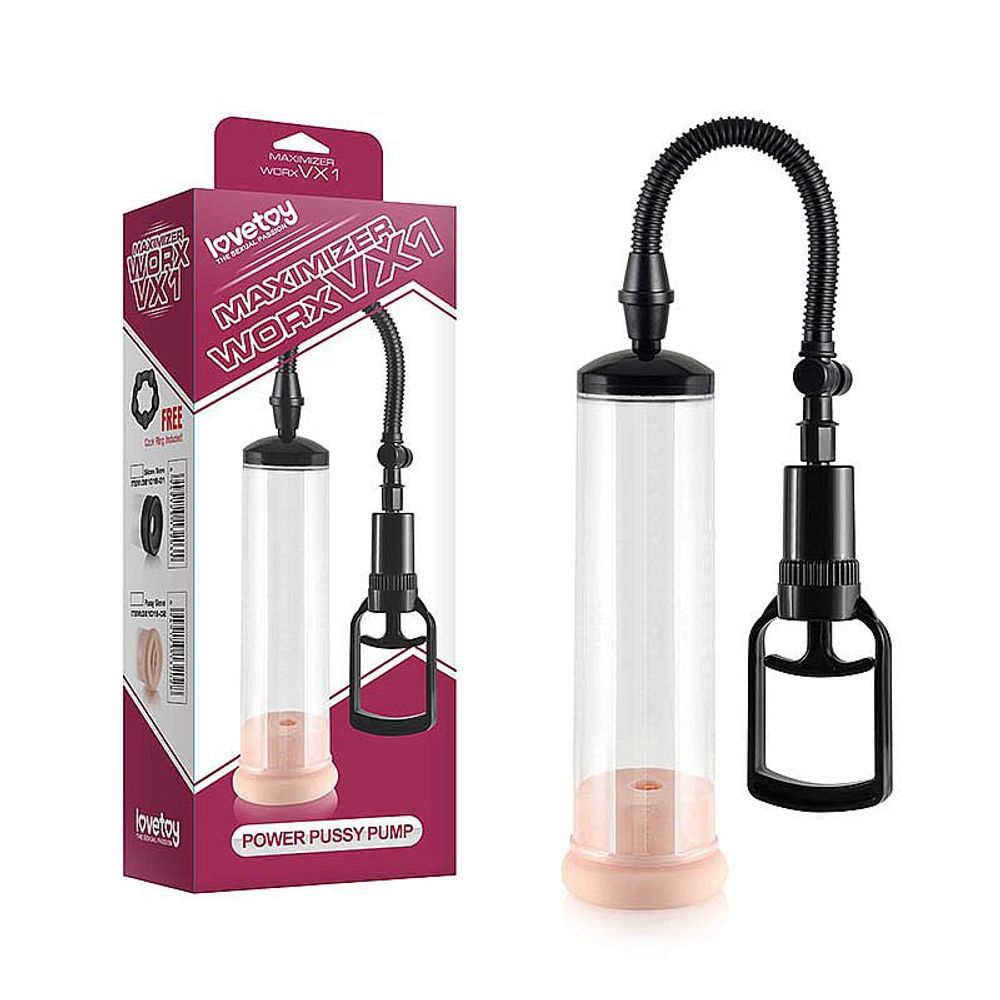 Bomba peniana de sucção manual com manopla de alto desempenho com uma válvula de liberação rápida da pressão e anel com forma de vagina. Ótima escolha para tratar a ejaculação precoce, a impotência masculina e desenvolver o órgão masculino. Melhora a irrigação sanguínea do pênis proporcionando melhor ereção.