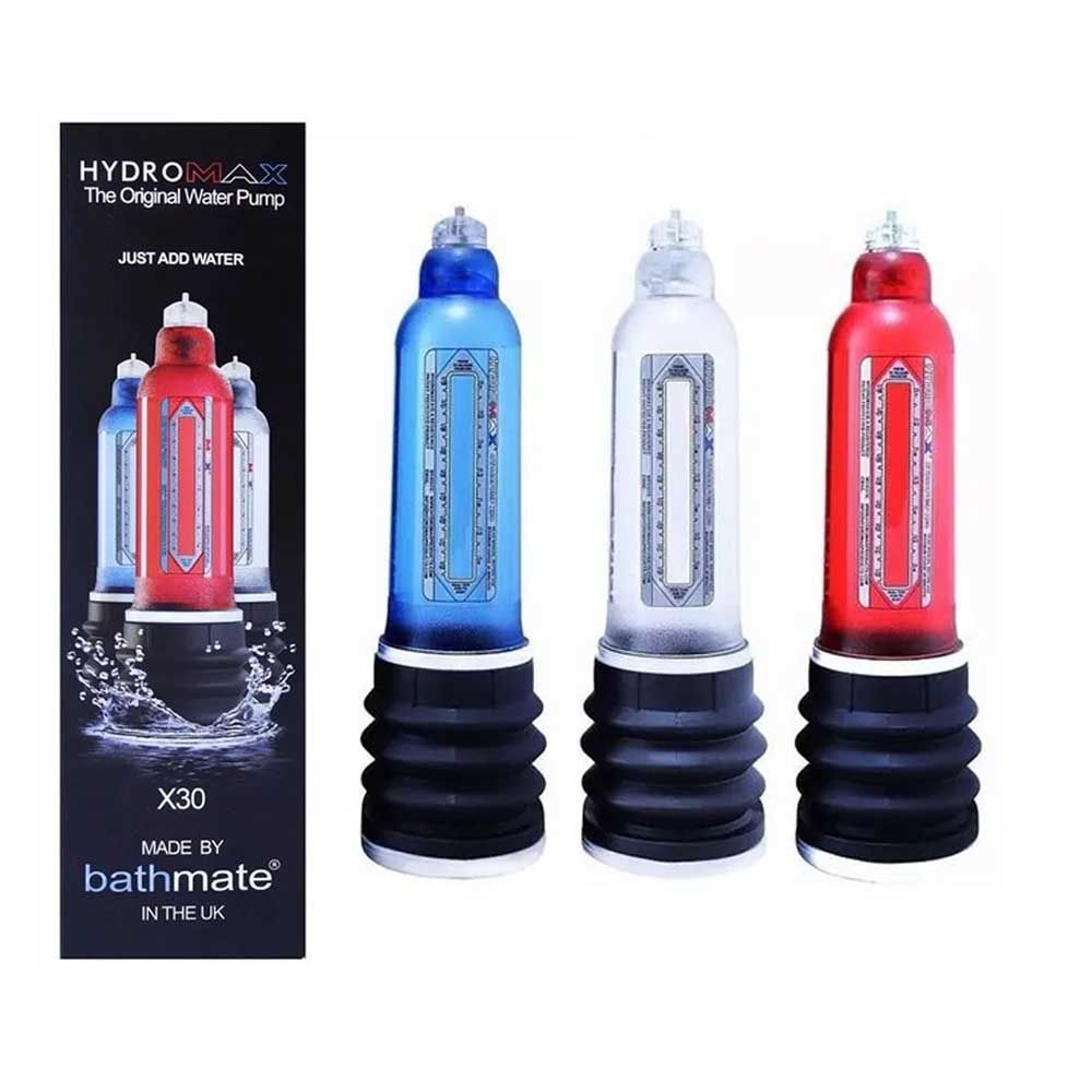 Bomba peniana Hydromax X30 manual, com base sanfonada que auxilia o funcionamento de pressão da água e sucção do pênis, são 8 modos de estimulador por pressão. Na banheira preencha com água e coloque o pênis ainda flácido dentro do tubo, mantenha o escroto do lado de fora, movimente o tubo para baixo em direção ao corpo para criar pressão na água e expelir a água pela ponta do tubo até que não aja mais vácuo, ao movimentar em direção ao corpo ocorrerá aumento na pressão, se caso estiver muito forte, basta pressionar levemente a ponta para diminuir a pressão, no chuveiro, inverta a posição e deixe o para baixo do chuveiro para enche-lo, certifique se de tampar a válvula que libera a pressão na ponta do tubo para evitar que a água vaze antes de preencher.