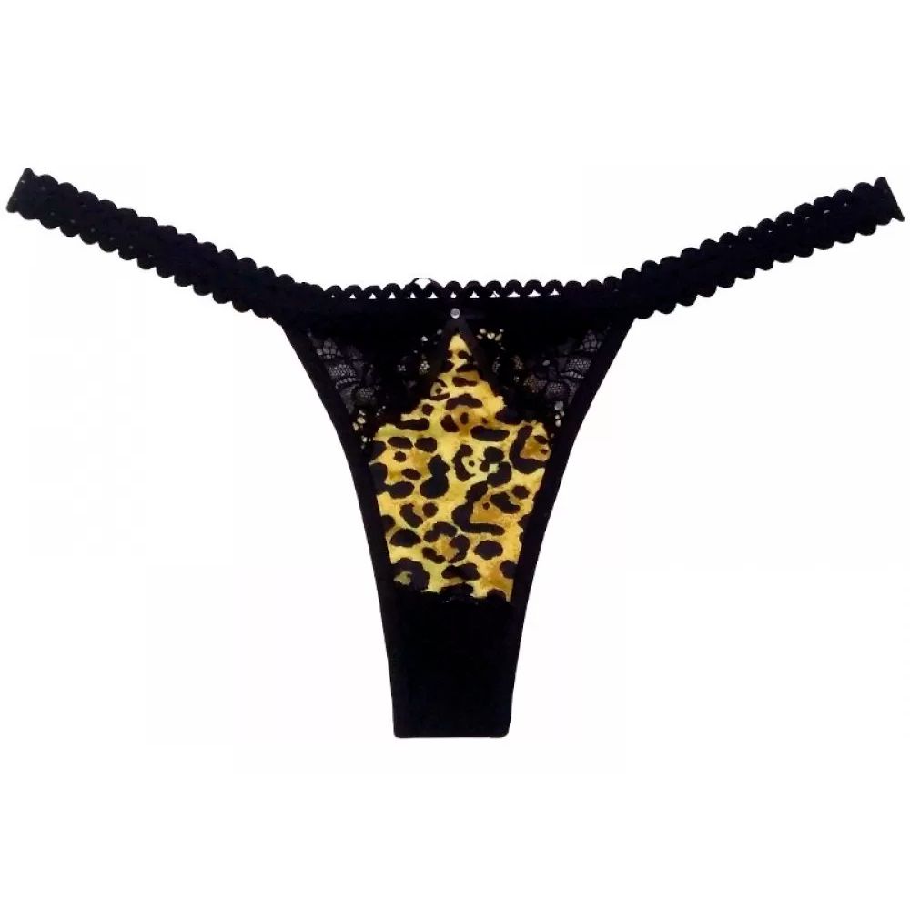 Calcinha Pintada - Calcinha sexy em estampa animal. Bumbum fio dental, detalhes na cintura. Calcinha que segue a tendência de animal print que nunca sai de moda. Estampa de onça na frete.