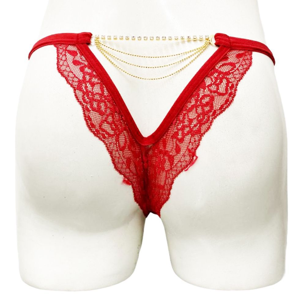 EROS AFRODITE - Calcinha Tanga Fio Dental Abertura Traseira Com Detalhes Em Strass Tamanho Unico Vermelho REF: 2303