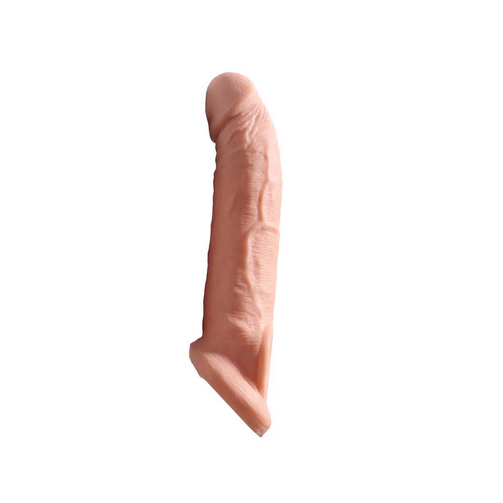 Capa Peniana Com glande definida e veias salientes ao longo do corpo, confeccionada em Cyberskin, material que assemelha-se a pele humana. Ideal para o seu prazer!