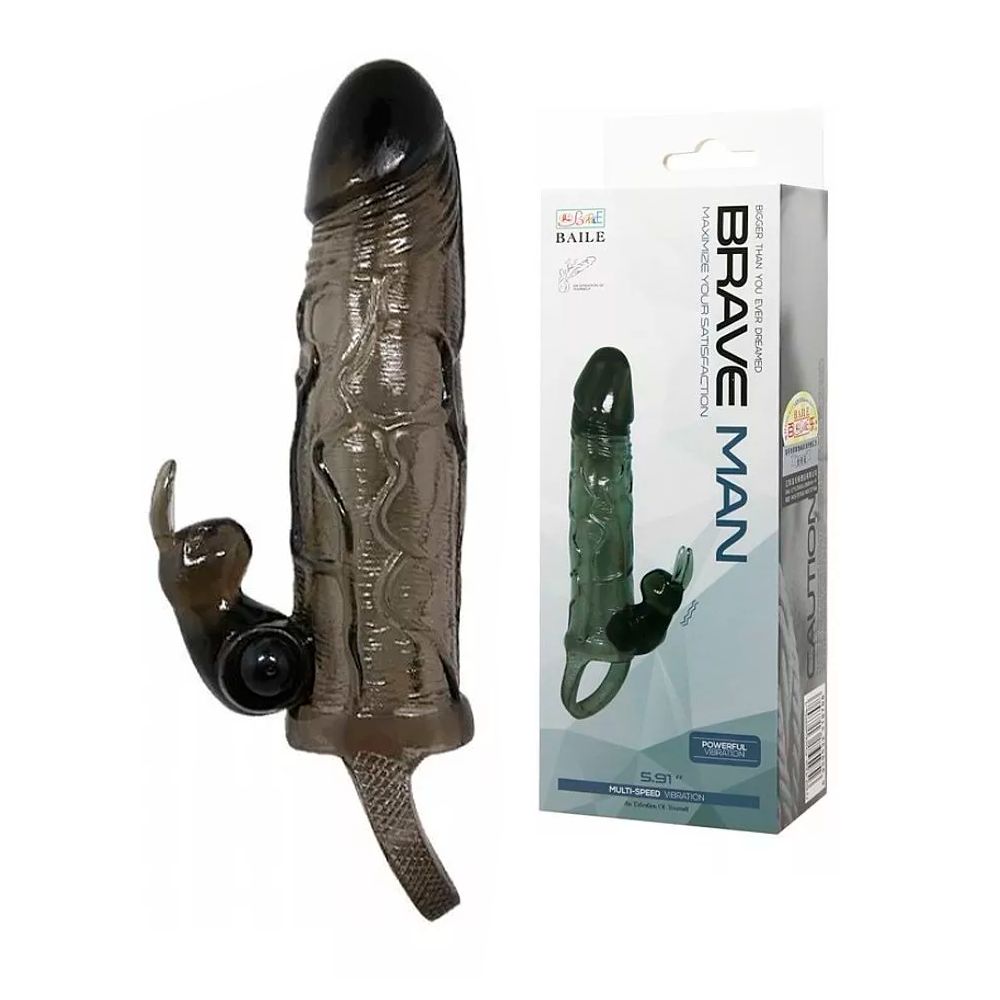 Capa Peniana com Anel Escrotal E Vibração Única 16,4 x 3,5 Cm - Brave Man