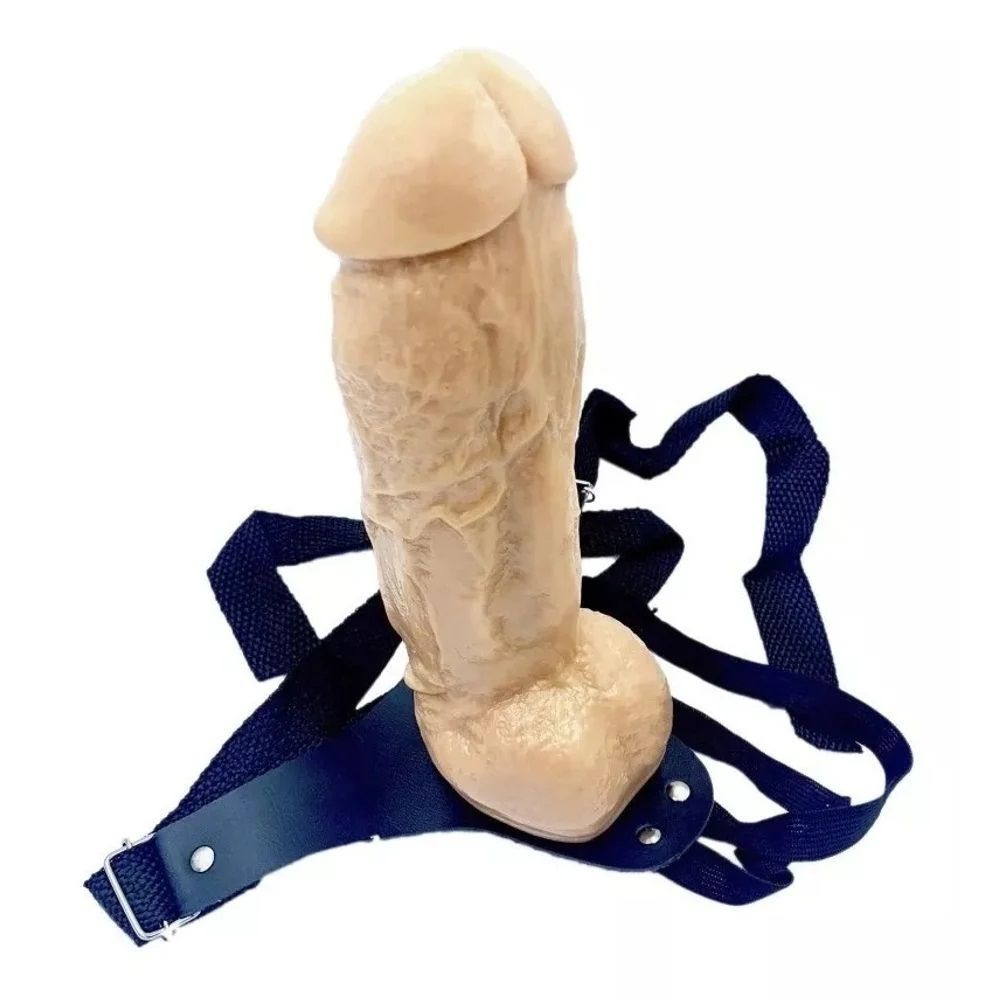 Cinta peniana toda em vinil com fitas em nylon, ajustes em fivelas e suporte para próteses com escroto, ventosa e base para cinta. Acompanha prótese toda confeccionada em silicone com glande definida, texturas de veias, escroto e ventosa tudo para deixar sua brincadeira ainda mais intensa, divertida e prazerosa!