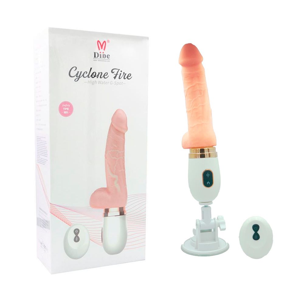 A Dibe é uma marca de produtos eróticos que fornecem muito prazer a seus donos e apresentam o Ciclone Fire que é uma prótese realística em forma de toda confeccionada em silicone com glande definida, veias, escroto, auto aquecimento, incríveis 7 modos de vibrações e rotações que podem ser controladas por um controle remoto sem fio. Essa prótese vem com uma ventosa super forte que firma e superfícies não porosas. Ideal para você que está à procura de uma prótese que irá trazer muito prazer à você!
