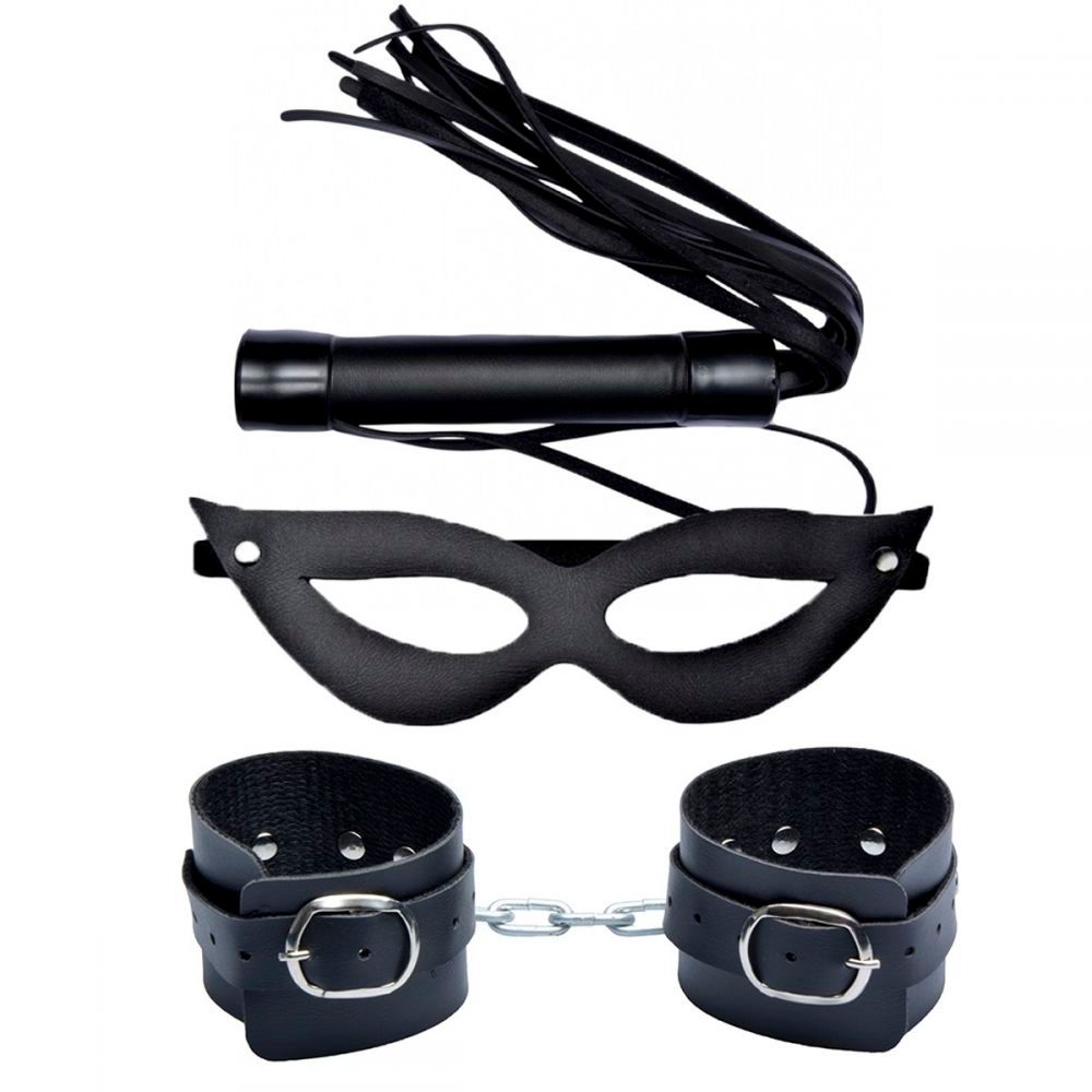 DOMINATRIX - Kit Luxo com Algema, Chicote e Máscara | COR: PRETO