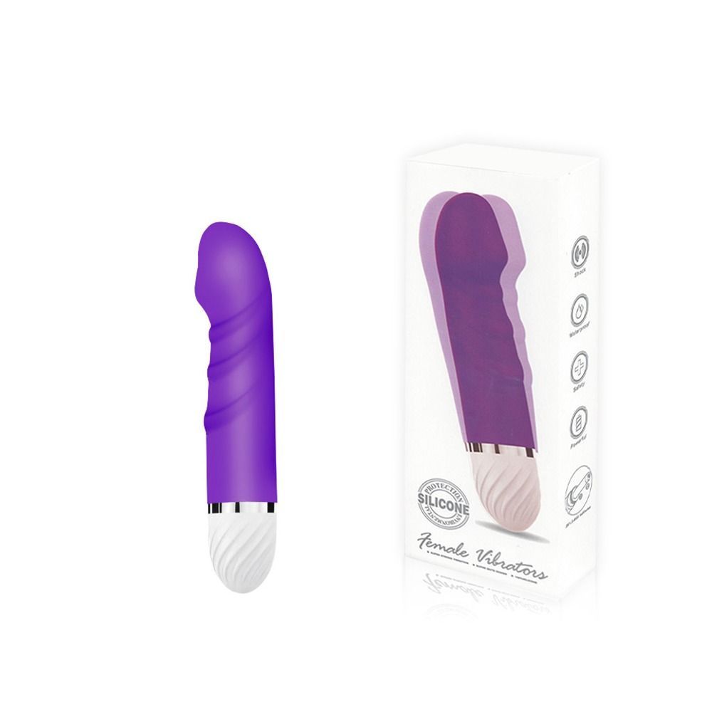 Vibrador em ABS, relevo em ondas. Com um motor multivelocidade controlado a partir de um botão giratório em sua base.