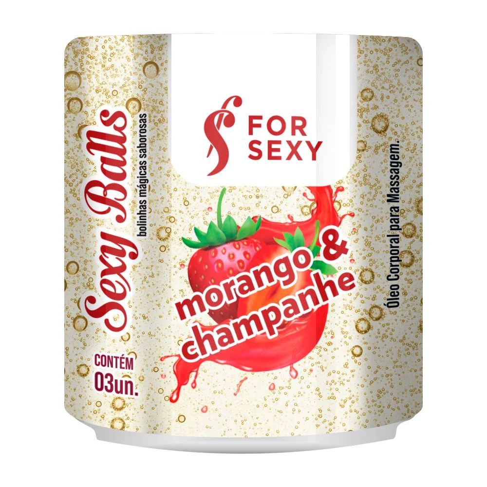 Bolinha Explosiva Beijavel Com 3 Unidades Sexy Balls | Sabor: Morango com Champanhe - For Sexy
