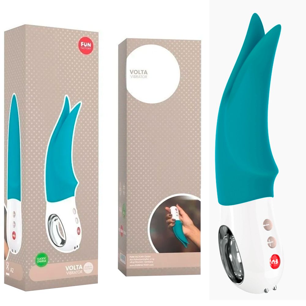 Vibrador Estimulador de Clitóris - Fun Factory Volta com ponta dupla levemente curvado com 6 modos de vibração, 6 intensidades, bateria 100% recarregável e apoio para a mão ergonômico para facilitar o uso. As pontas do vibrador são flexíveis e contém motores potentes e silenciosos. É confeccionado em silicone atóxico de grau médico que não faz mal a pele é 100% seguro e sua tinta é a base de soja o que o faz um produto vegano. Possui carregamento magnético e é resistente à água. Perfeito para a mulher que gosta de um amigo silencioso e divertido. O Volta é o melhor amigo das mulheres e dos animais!