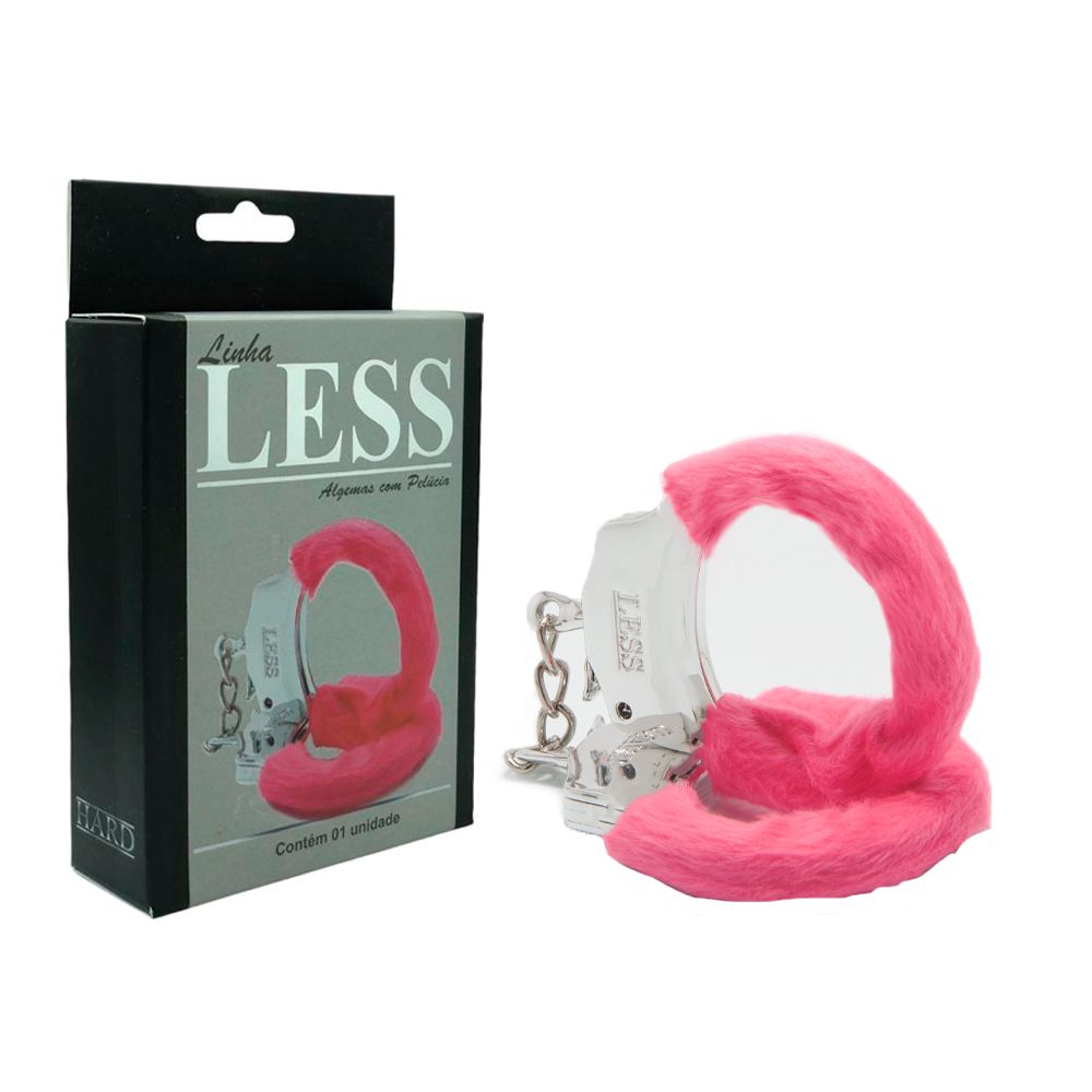 Algema Sensual De Pelúcia Cromada Em ABS Com Par De Chaves Rosa - HARD LESS