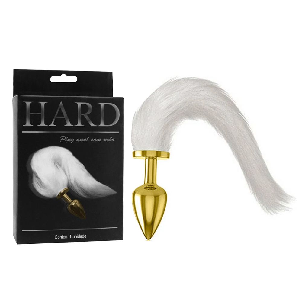 Plug Anal em Metal Dourado rabo Cauda Branca Fetiches - HARD