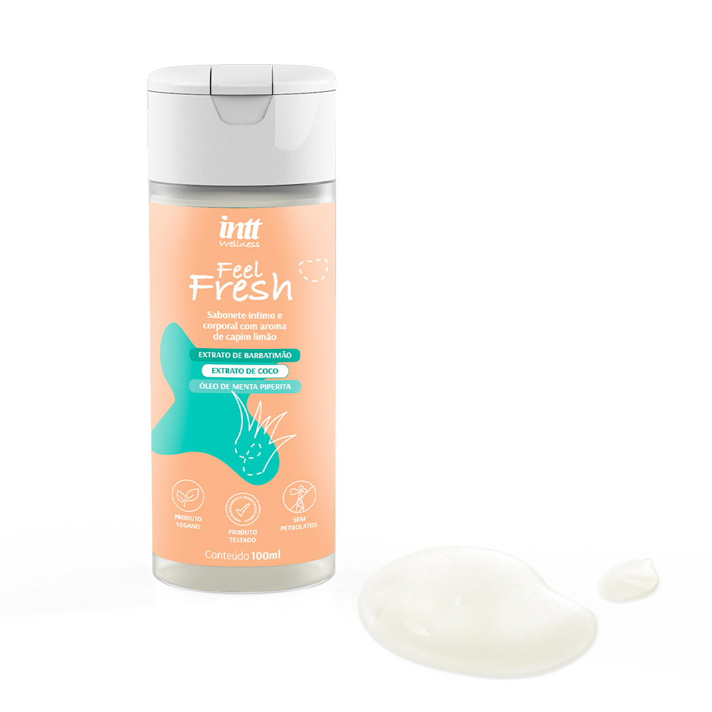 Feel fresh é um sabonete íntimo e corporal com aroma de capim limão, desenvolvido com barbatimão e extrato de coco. Sua formulação é totalmente compatível ao pH natural da região íntima, podendo ser utilizado diariamente sem medo. Os sabonetes comuns não possuem o pH semelhante com o da nossa região íntima, podendo gerar alergias e desregular nossa flora natural.