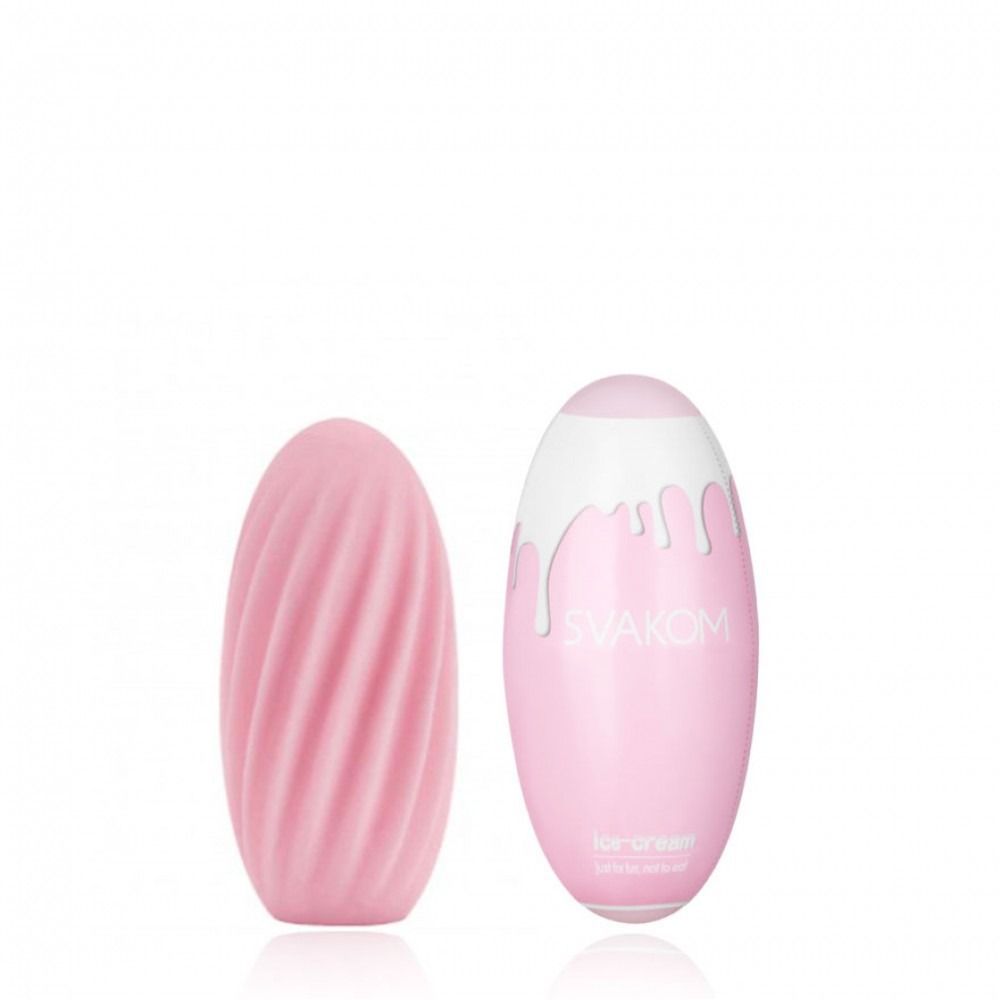 Hedy Ice Cream da Svakom é um masturbador com material de pele virtual, flexível e sem odor. Possui elasticidade incrível, molda-se perfeitamente ao pênis ou ao vibrador. Pode ser usado como estimulador e capa de dedo.