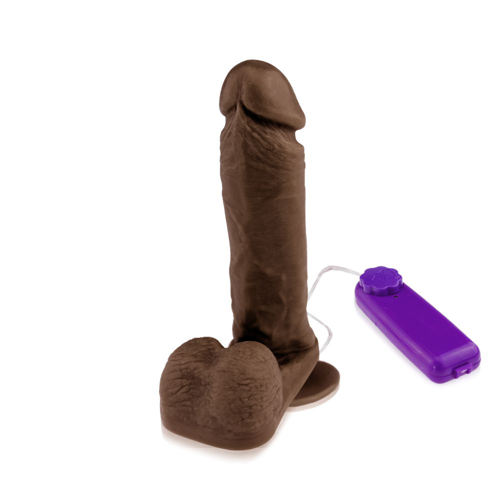 Pênis de Borracha Com Escroto, Vibro e Ventosa Marrom 19 x 4,5 cm
