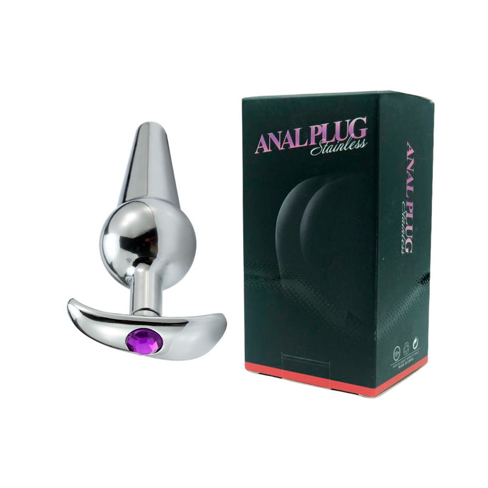 Plug anal em Aço Inox, com formato escalonado e ponte agudo, feito em aço círurgico fundido e polido a mão, possui em sua base uma pedra lapidada que lembra um diamante colorido, pode se aproveitar com temperaturas diferentes, coloque-o no freezer para esfriar, ou em uma bacia de água quente para aquecer.
