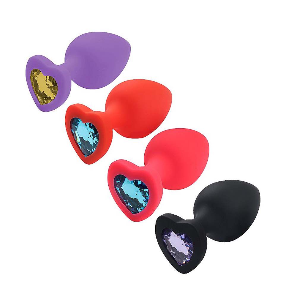 Plug Anal Coração Em Silicone Com Joia Na Base Tamanho G 9 X 4 Cm