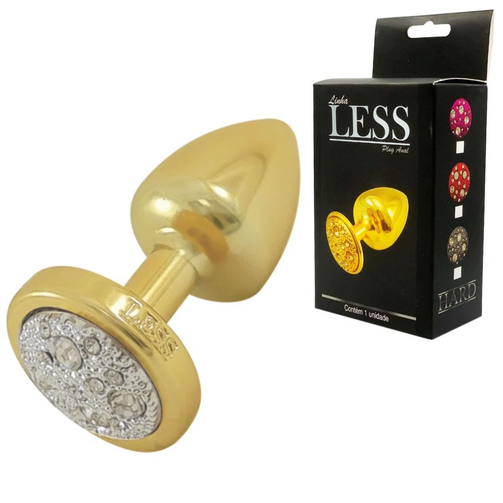 Plug Anal Dourado Médio Jóias Cravejado 6,7x3,5 CM Pedra Cromada - HARD