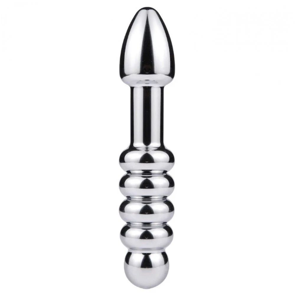 Plug Anal em Alumínio Formato Cônico com Esferas Massageadoras e Linhas Estimuladoras - 18 x 3,5 CM. Ideal para quem ama todos os detalhes ou implementar na masturbação anal!
