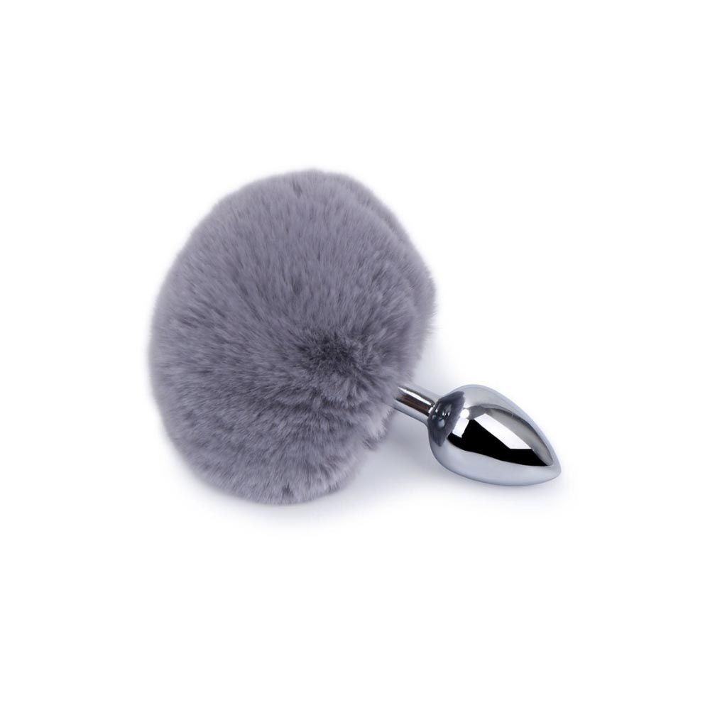 Plug Anal Metal Cauda Rabo Coelho Pompom 6,5 x 2,5 CM Cinza - Me Ame