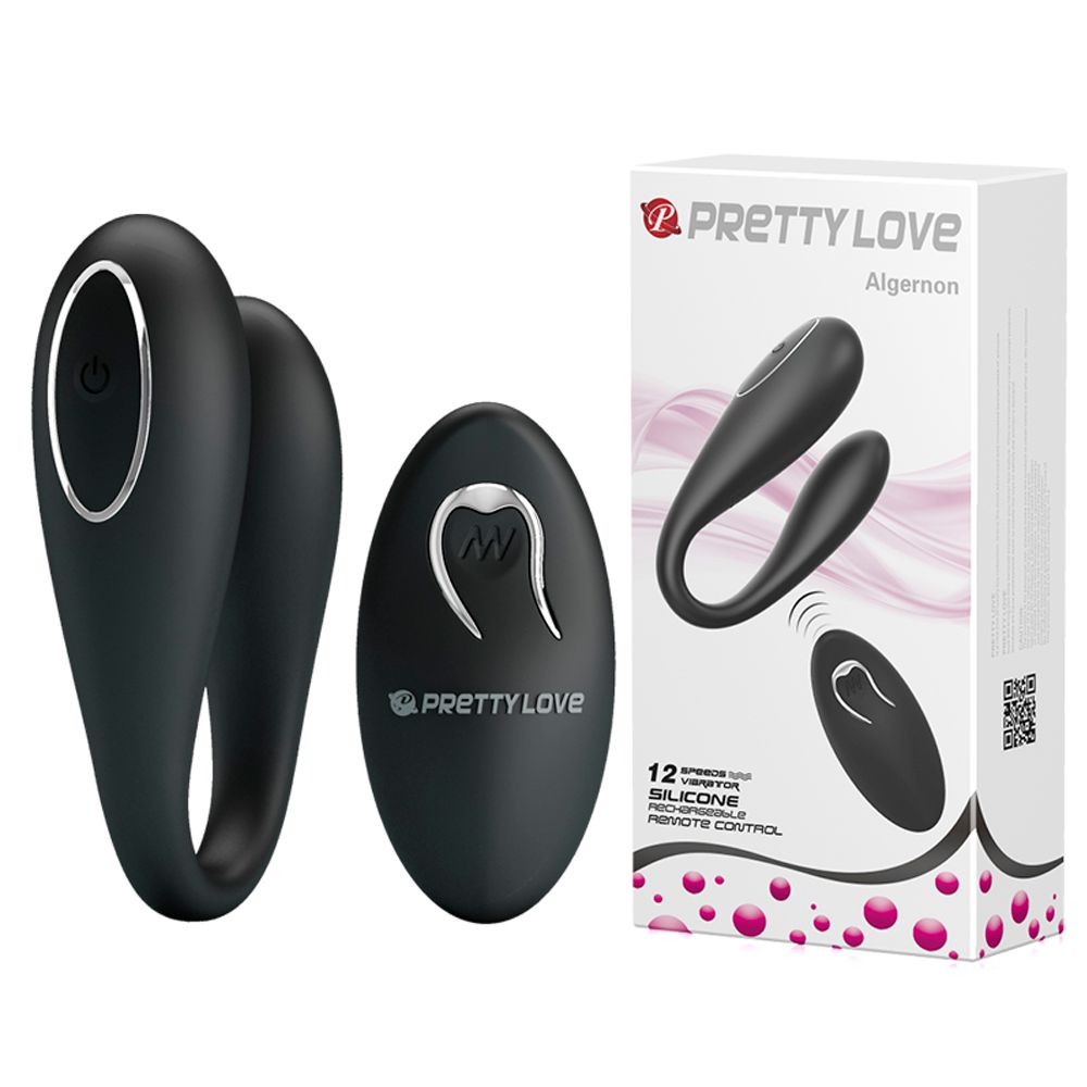 Vibrador para Casal Com Controle - Pretty Love Algernon - Este vibrador possui 12 modos de vibração comandados pelo simples toque de um botão no controle remoto que o acompanha. O controle remoto tem alcance de até 12 metros de distância, o que permite uma brincadeira e estimulação a mais para o casal, pois o Algernon é discreto e pode ser utilizado por baixo da roupa, enquanto seu parceiro(a) fica com o controle.Possui ainda textura ondular em toda sua parte interior, além de seu formato especialmente pensado para um encaixe perfeito e confortável.Ideal para casais que procuram novas sensações. Possui bateria interna recarregável via USB e controle remoto.