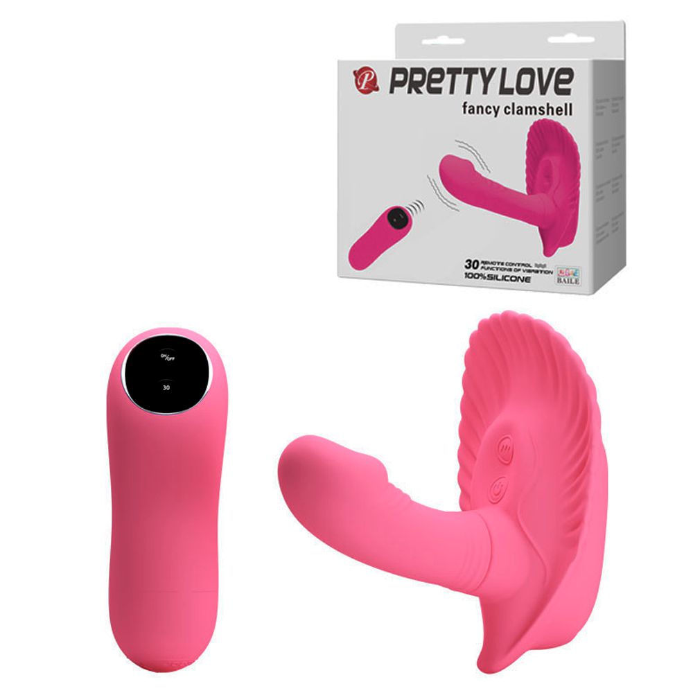 Pretty Love Fancy Clamshell é um estimulador clitoriano com design inovador, possui formato de concha que se adapta perfeitamente aos contornos femininos com mini pênis penetrável, confeccionado em silicone soft touch, material macio e suave ao toque. Possui 30 funções de vibrações diferentes, ultra silenciosas e potentes, que podem ser controladas pelo controle remoto sem fio ou no próprio estimulador.