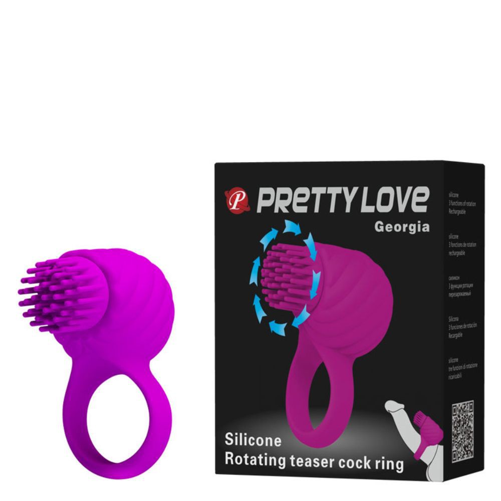 Pretty Love Georgia - Anel Peniano confeccionado em silicone soft touch, o material mais nobre do mercado erótico, é flexível e pode ser ajustado para qualquer tamanho de pênis. Em sua parte superior, possui saliências em formato de cerdas que estimulam com eficiência a região do clitóris durante a penetração, 3 modos de rotação, resistência à água e recarregável via USB. Conta ainda com um único botão no topo do estimulador responsável por ligar e desligar a rotação. Perfeito para descoberta de novos prazeres!