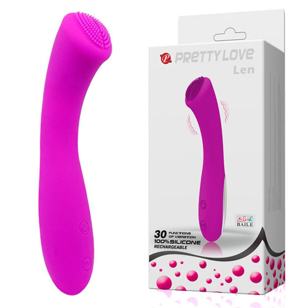 Pretty Love Len é um vibrador estimulador de clítoris recarregável, fabricado em silicone soft touch, material macio, suave e com toque aveludado, com textura de pequenas cerdas que aumentam o prazer. Possui 30 tipos de vibrações diferentes, ultra silenciosas e potentes e ainda é resistente à água. Perfeito para descoberta de novos prazeres.