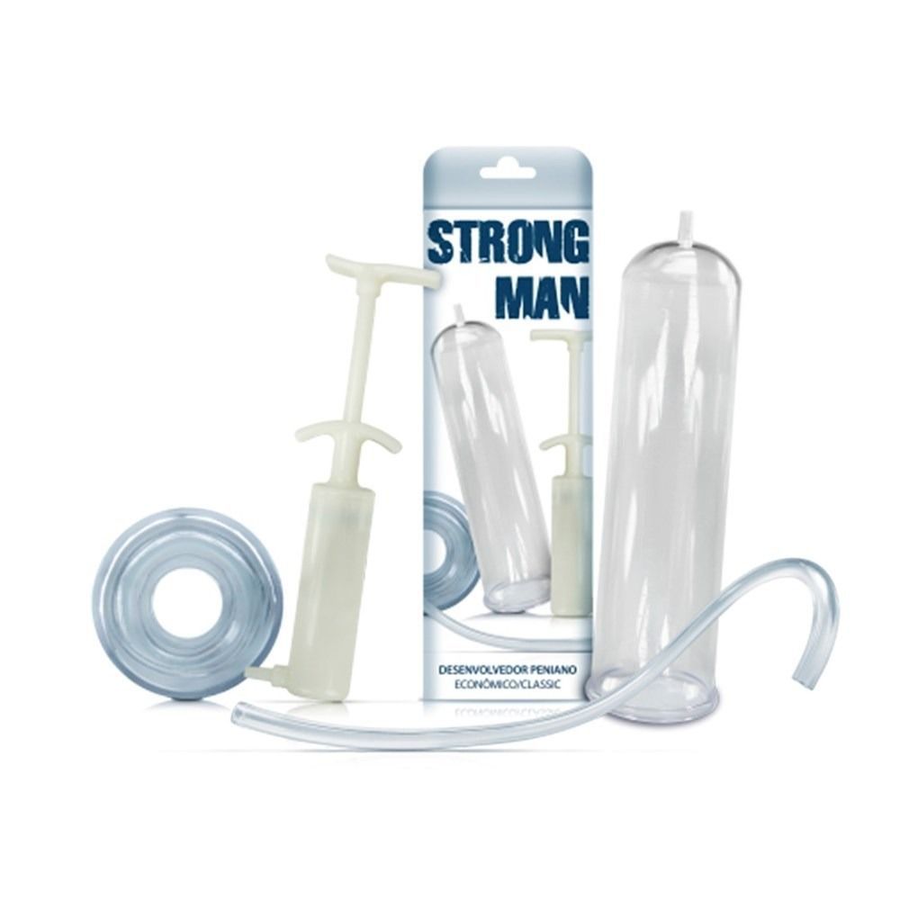 Bomba Peniana Strong Man - Bomba peniana manual, desenvolvida para tratar dos órgãos sexuais pouco desenvolvidos, ejaculação precoce e impotência masculina. Moderno e eficiente aparelho manual para desenvolvimento peniano, capacita o usuário a aumentar e engrossar o pênis através de exercícios diários.