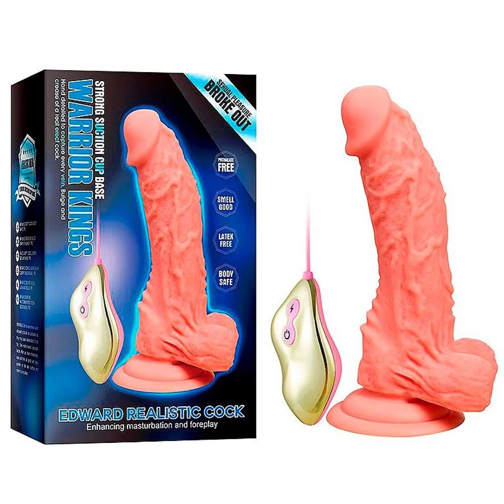 Warrior King Edward é uma prótese recarregável em formato de pênis realístico com glande definida, veias salientes, escroto, ventosa, vibração e rotação, tudo isso em um produto só, possui controle remoto que contém um botão turbo que deixa a vibração e a rotação mais intensa e mais rápida, deixando a penetração ainda mais gostosa e prazerosa. Confeccionado em TPE esse produto irá te proporcionar momentos incríveis!