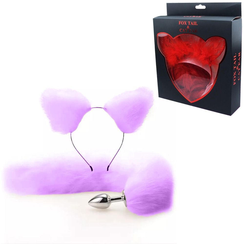 Me Ame Plug Anal Pequeno Metal Com Cauda Longa De Raposa Gata Fantasia Fetiche Longa e lilás E Tiara de Orelinha Fox Tail