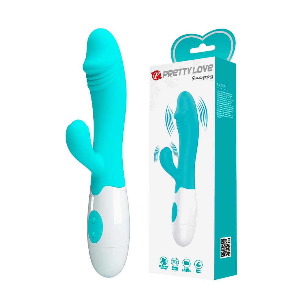 Snappy - Vibrador ponto g com estimulador de clitóris, confeccionado em silicone ultra macio. Possui 30 níveis diferentes de vibração, curvatura que permite atingir o ponto G com formato de glande, vibrações intensas e um estimulador de clítoris com micro vibrador interno que aumenta a excitação e leva a orgasmos intensos e diferenciados. Desfrute do prazer de uma forma muito mais gostosa!