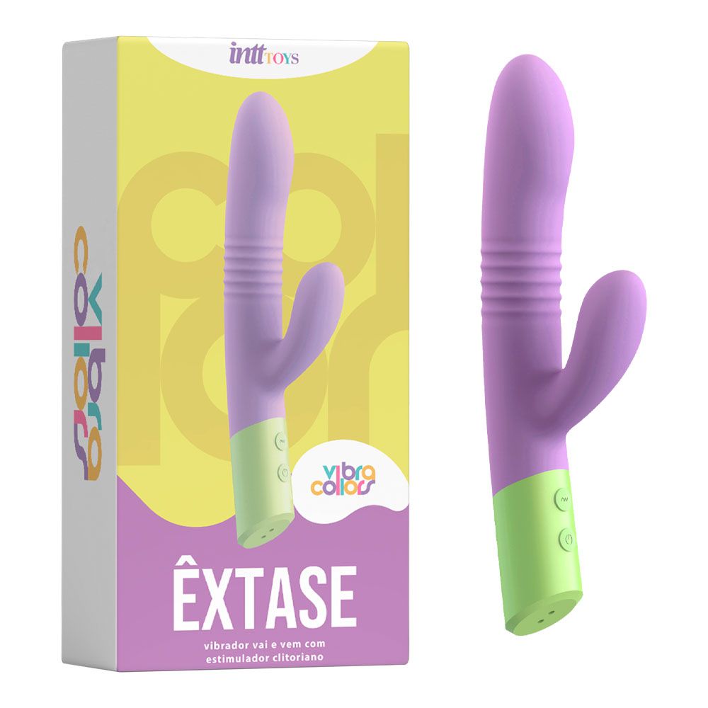 Descubra o Vibrador Êxtase com ação dupla: movimentos de vai e vem e 10 modos de vibração. Feito em silicone cirúrgico, proporciona uma experiência sensorial intensa e segura.